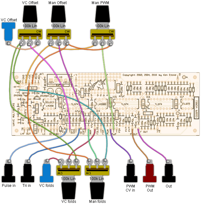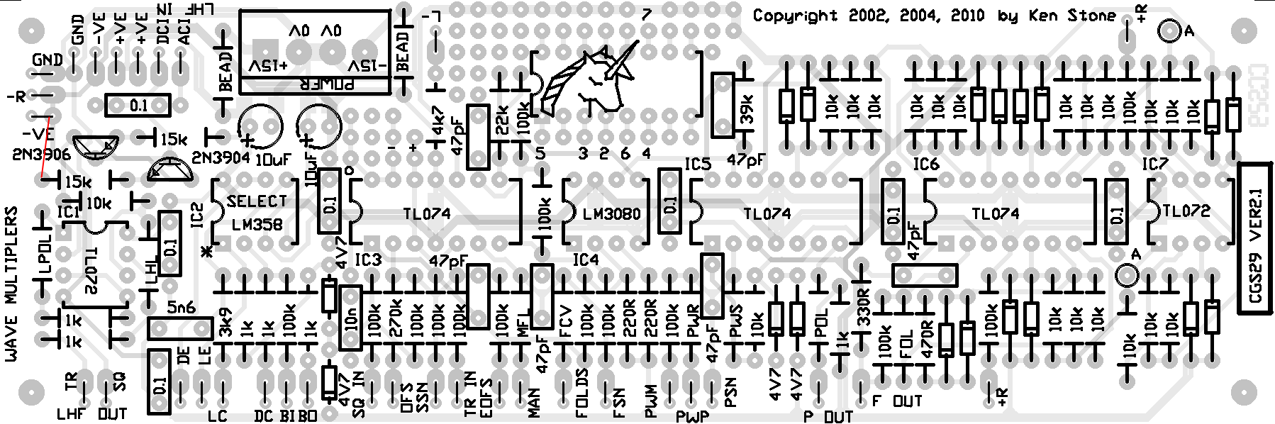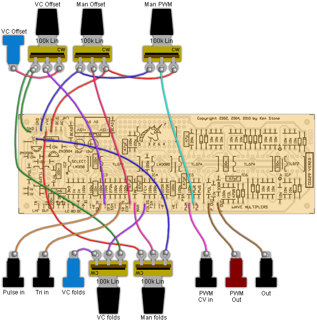 Wave Multiplier for music synthesizers. ![]() Photo of the VER2.0 PCB. Changes from V1.x: Two extra folding stages have been added to the main multiplier. The prototyping area has been modified to allow easy substitution of an LM13600/LM13700/NE5517N for the LM3080/CA3080, which is now obsolete. TL07x series chips have been substituted for the LM324. Resistors affecting levels have been marked. In addition to this, there are some suggested modifications to improve it further, though it will work without the modifications. Construction