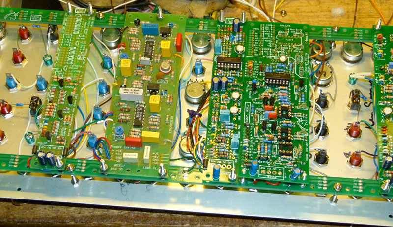 ConstructionShort spacers (or a couple of nuts) are needed to space the module boards off the rails so that there is space for the power wire, and so the PCB tracks on the modules are not shorted. 12mm M3 bolts with 5mm spacers is the recommended combination. If using the CGS91 mounted directly to the front panel then the end mounting bolts and spacers need to be long enough to clear your panel mounted components - 16mm bolts with 10mm spacers is the minimum recommended combination. The CGS91 is also suitable for mounting in to the base of the boat and is the recommended approach