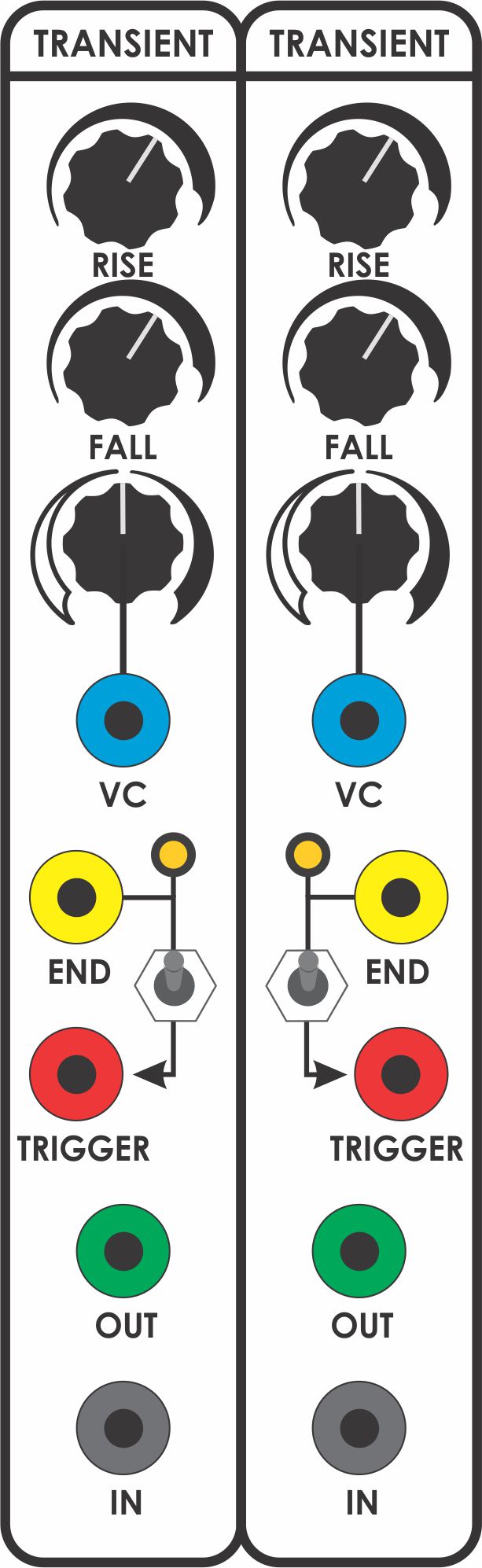 The CGS509 is a Dual Transient Generator with voltage controllable rise/fall times. It is a scaled down version of the CGS514 Universal Slope Generator and provides some of the basic functions that can be patched on the CGS514 but occupying less panel space in your system and freeing up the CGS514 for other functions.