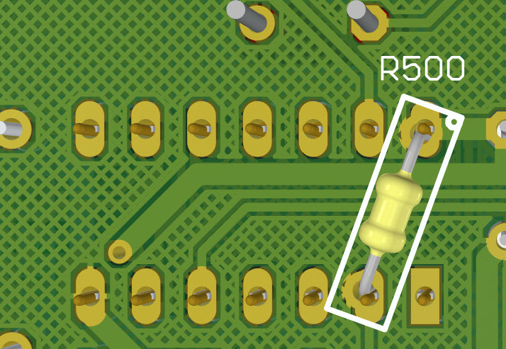 Mount R500 on the underside of the PCB between pins U501_2 and U501_14.