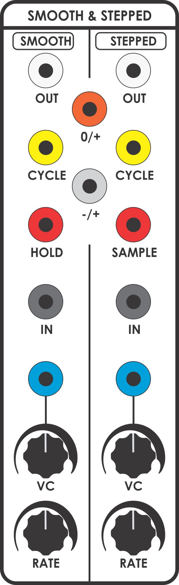 NB: The Coupler outputs are most usually used to link the Smooth & Stepped Generator sides together. The outputs are especially stiff pulses generating near-to-rail outputs so users should be aware that these are "out of the ordinary" outputs and due attention must be paid when patching to other modules.