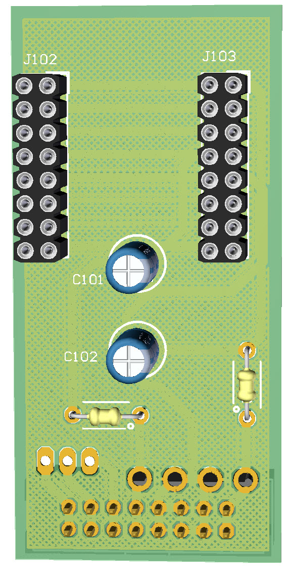- Install R119 vertically in to the pad for C101+ and then install C101 between the open leg of R119 and C101-