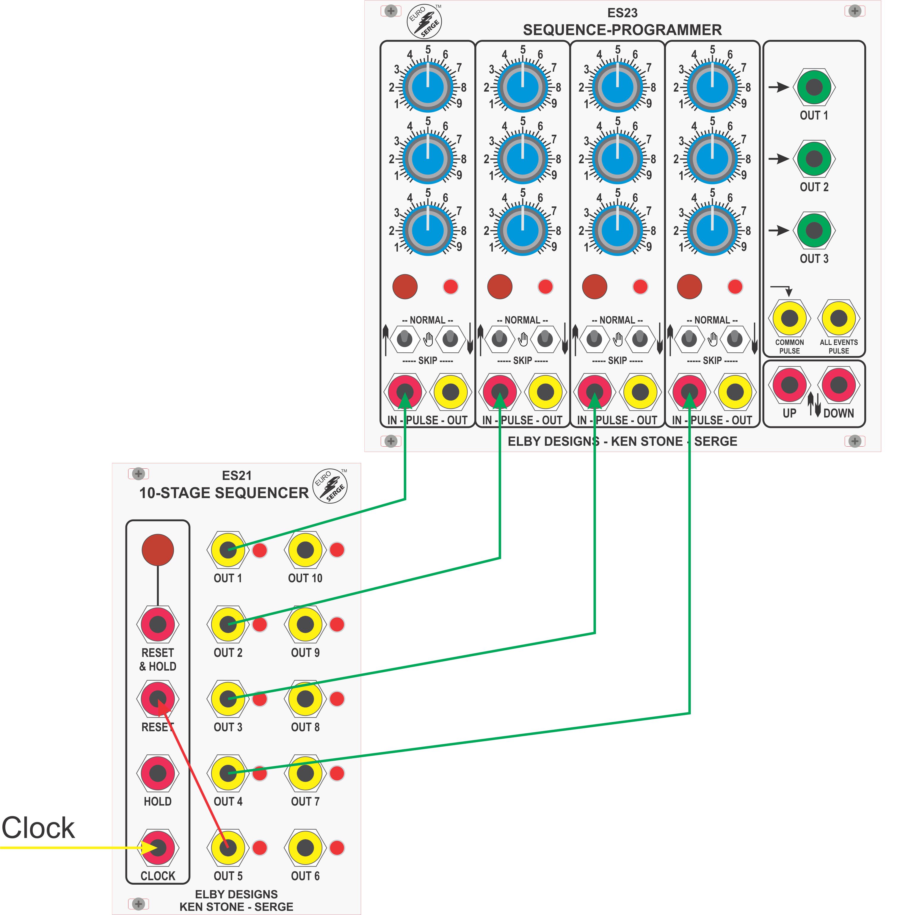 A minimal configuration would comprise solely of an ES23. For automated operation you will need to provide a clock source such as from an LFO.