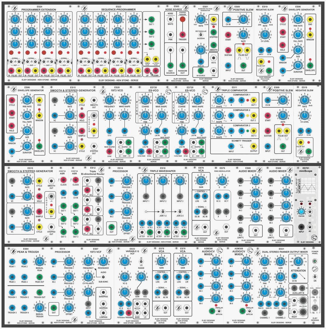 These systems chart the expansion from a single-voice Serge system through to an idealised EuroSerge System with multi-voice patching capabilities.
