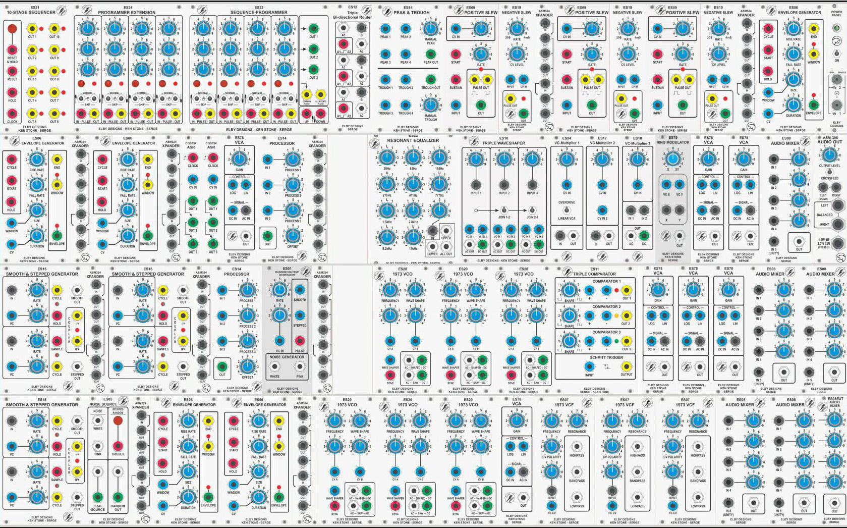 These systems chart the expansion from a single-voice Serge system through to an idealised EuroSerge System with multi-voice patching capabilities.