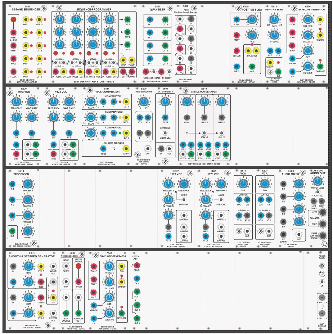 These systems chart the expansion from a single-voice Serge system through to an idealised EuroSerge System with multi-voice patching capabilities.