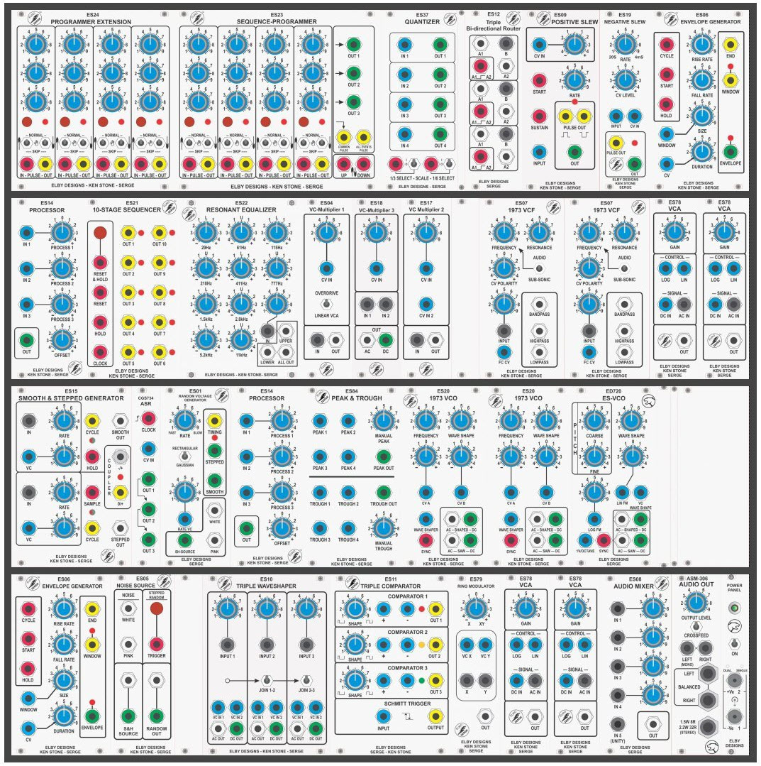 These systems chart the expansion from a single-voice Serge system through to an idealised EuroSerge System with multi-voice patching capabilities.