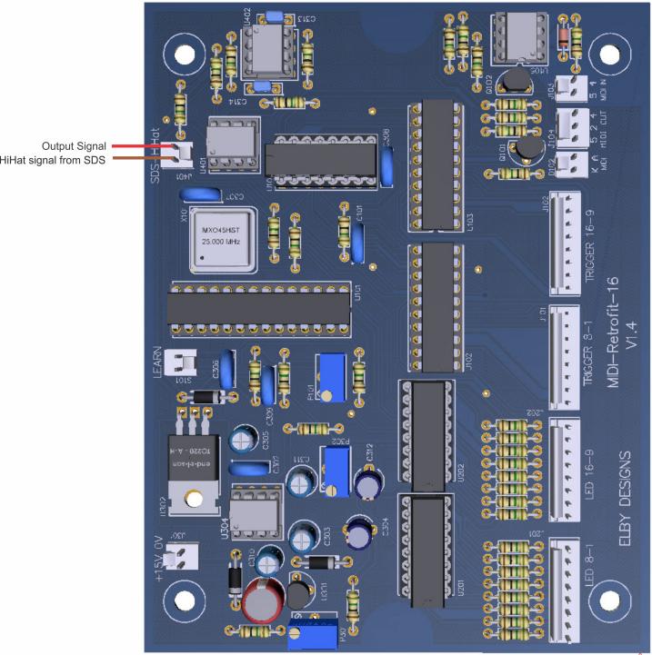 From PCB Revision 1.4 onwards the MIDI-Retrofit 16 includes an additional circuit designed to work with the SDS Hi-Hat module.