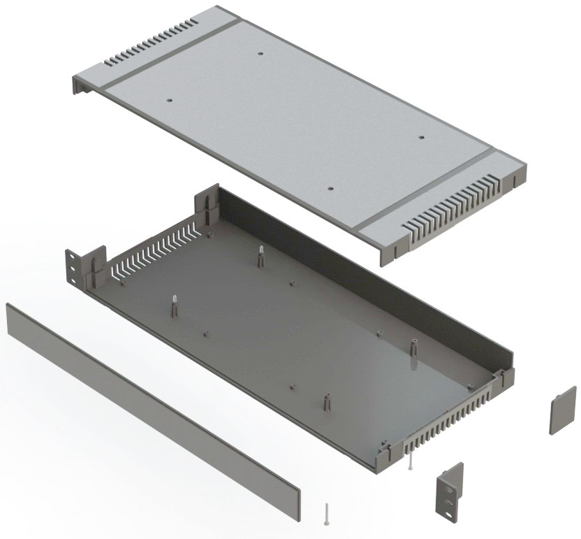 This drawing shows the 1U rack exploded so that you can see its component parts . |