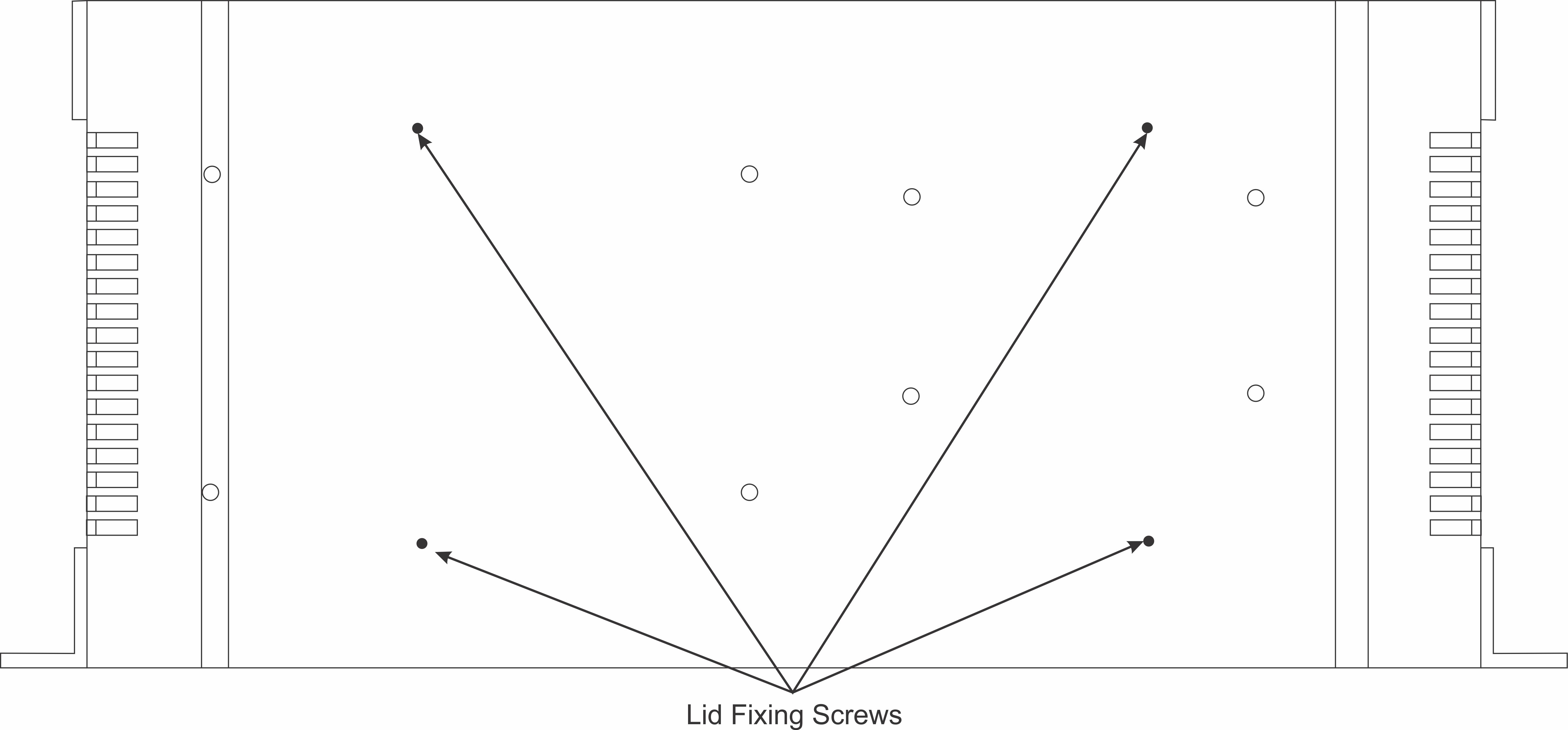 Currently there are no user configurable options but if you need to access inside the unit to update the firmware, change future option settings or re-calibrate the unit then remove the 4 lid fixings screws indicated here and carefully prise the top half of the enclosure away from the bottom half.